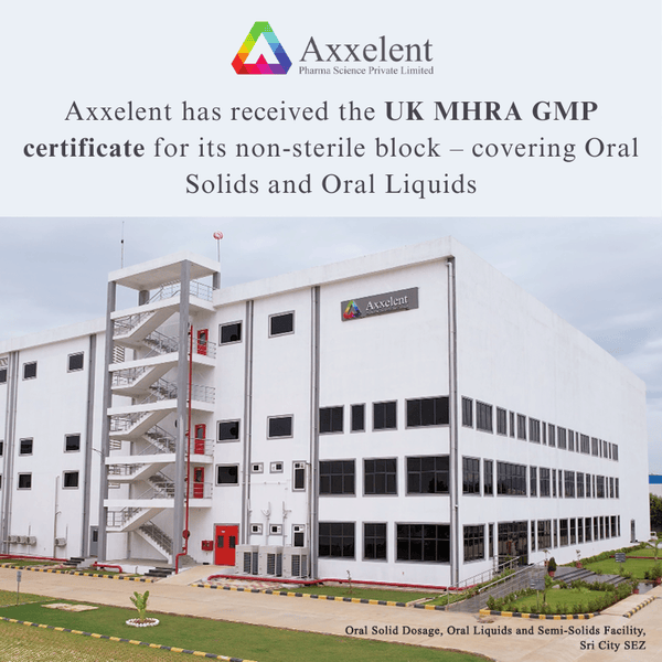 Expansion of Phase 2 Manufacturing for Small Volume Parenteral“Axxelent R&D unit received Recognition letter & Registration Certificate from DSIR, Ministry of Science and Technology, Govt. of India”